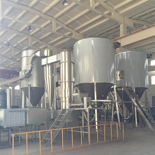 近年來我國中藥浸膏干燥技術(shù)進(jìn)步顯著,先進(jìn)的浸膏干燥技術(shù)和設(shè)備得到了一定的推廣,但是針對干燥工藝優(yōu)化和設(shè)備改良的研究仍然迫切需要加強(qiáng)。力馬干燥切合實(shí)際地根據(jù)中藥浸膏干燥技術(shù)的發(fā)展現(xiàn)狀,針對廂式干燥、噴霧干燥、真空干燥等常用干燥技術(shù)的原理、設(shè)備狀況和技術(shù)特點(diǎn),分析了其不同干燥手段用來進(jìn)行中藥浸膏干燥的優(yōu)劣,并總結(jié)出針對不同中藥特性合理選擇適當(dāng)?shù)母稍锓椒ㄒ云谔岣咧兴幗喑善返馁|(zhì)量。本工程著重介紹中藥浸膏噴霧干燥工程,中藥浸膏高速離心式噴霧裝置是離心式噴霧干燥技術(shù)在特定物料干燥中的應(yīng)用,也是利用高速離心式霧化器使物料分散成細(xì),與熱空氣充分接觸,完成瞬間干燥,形成粉狀成品的干燥裝置。該干燥設(shè)備是專門用來解決中藥浸膏和植物提取液的噴霧干燥機(jī),它有效地解決了原LPG高速噴霧干燥機(jī)在中藥浸膏干燥中出現(xiàn)的諸多問題。