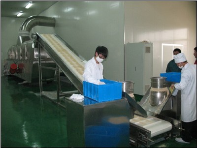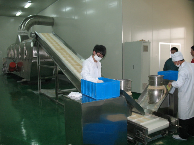 2、該生產(chǎn)線的核心部分:干燥系統(tǒng)。采用分段加熱的方式,預(yù)干燥段采用高壓低風(fēng)量風(fēng)機(jī),使較濕的雞精顆粒能完全流化;干燥段采用低壓高風(fēng)量的風(fēng)機(jī),單位時(shí)間內(nèi)帶走水份多,干燥均勻;冷卻段采用高風(fēng)量風(fēng)機(jī),能迅速帶走熱量,降低產(chǎn)品溫度,既達(dá)到水分控制的要求,又方便后續(xù)包裝工藝。