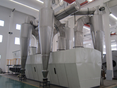 沸騰干燥器,又稱流化床,自應(yīng)用30多年來,有了不斷的改進(jìn)、提高,在制藥、化工、食品、糧食加工等行業(yè)廣泛應(yīng)用,如:原料藥、顆粒成藥、沖劑、飼料、塑料樹脂等粉狀、顆粒狀物料的除濕、干燥。物料粒徑可以在0.1~6mm范圍,最佳為0.5~3mm.。