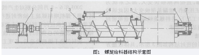 1——減速機(jī); 2——軸承箱; 3——螺旋; 4——進(jìn)料; 5——旋閃主機(jī); 6——軸端密封; 7——軸承座