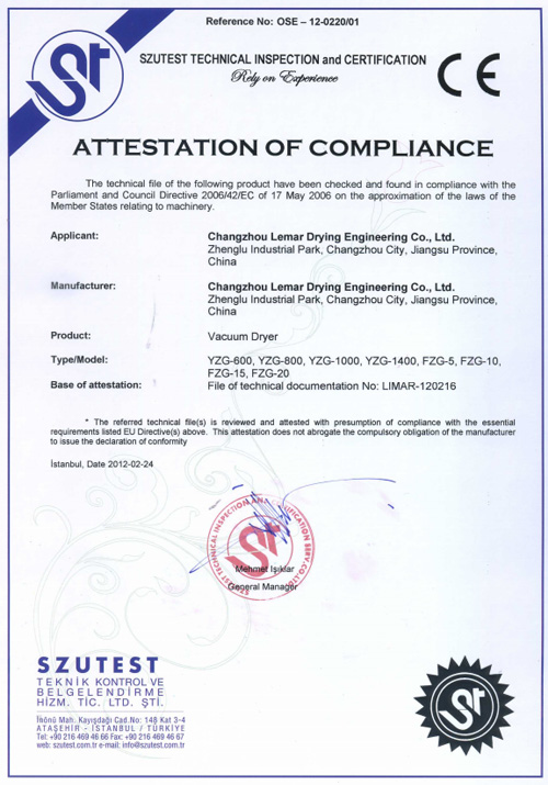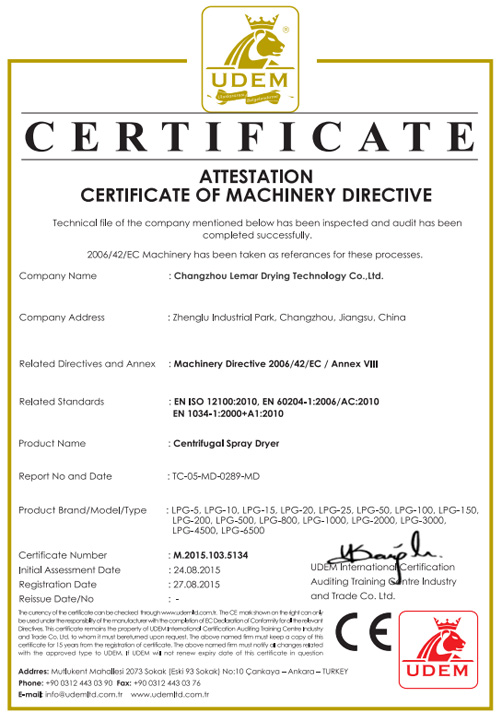 噴霧干燥CE證書