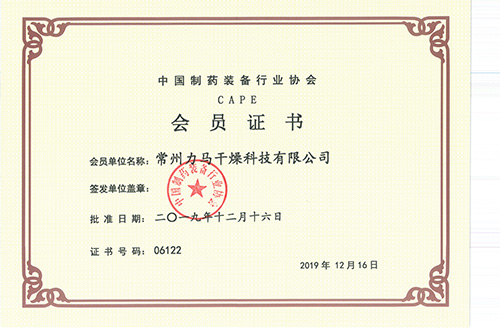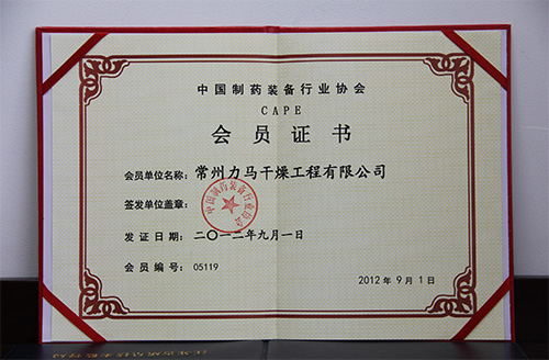 中國制藥裝備行業(yè)協(xié)會-會員證書